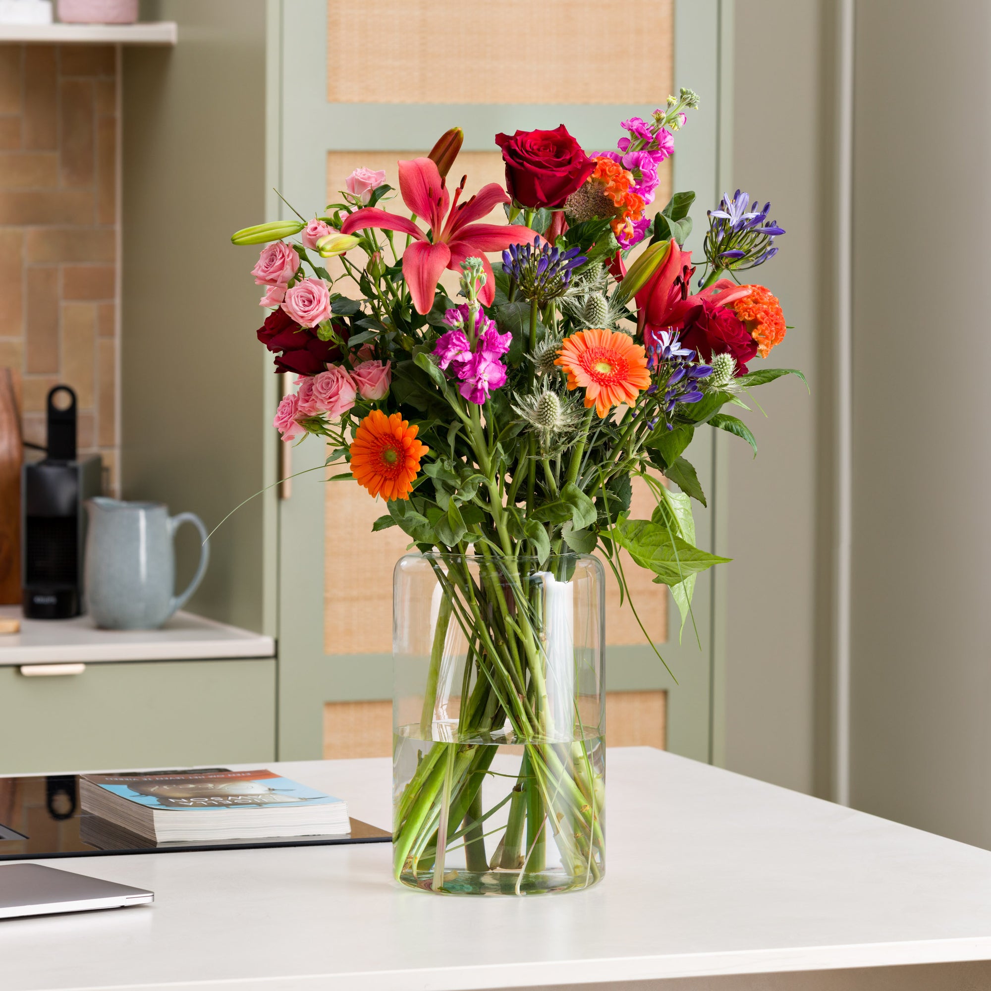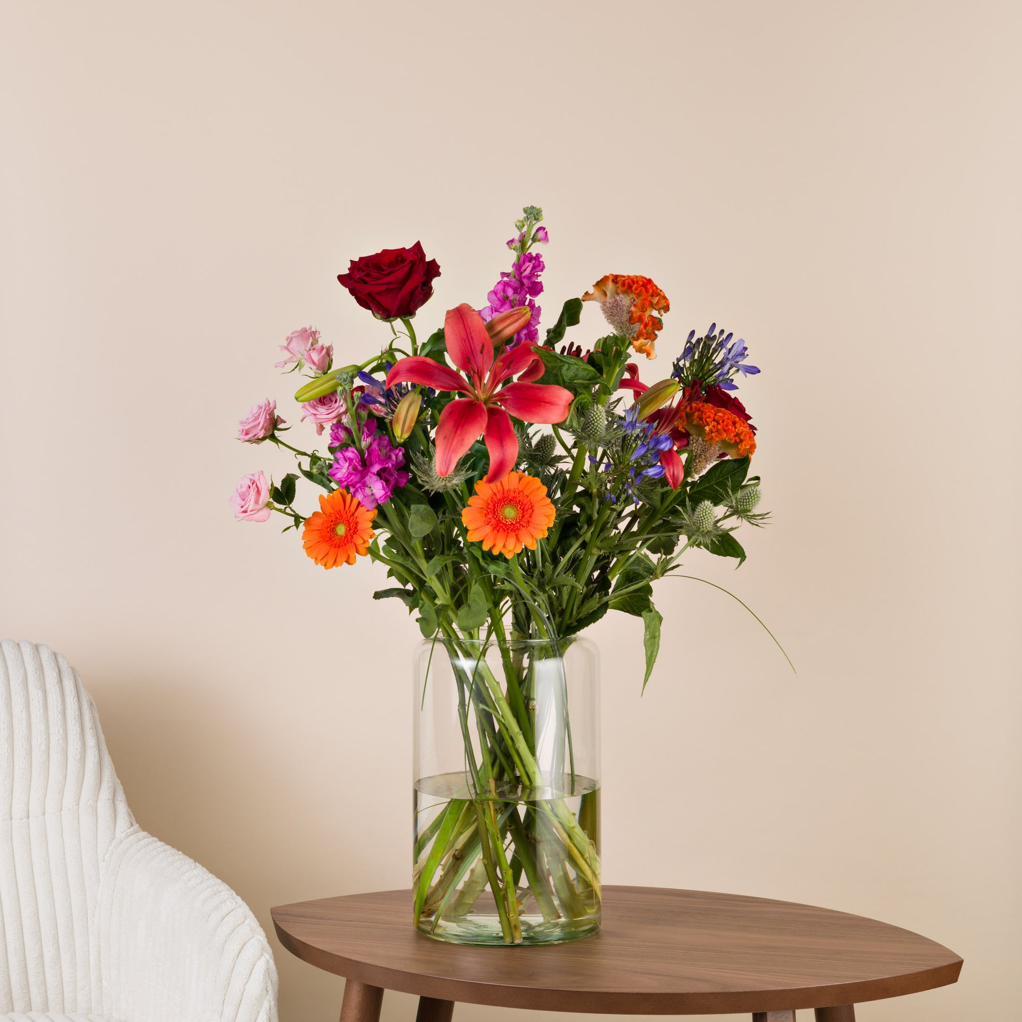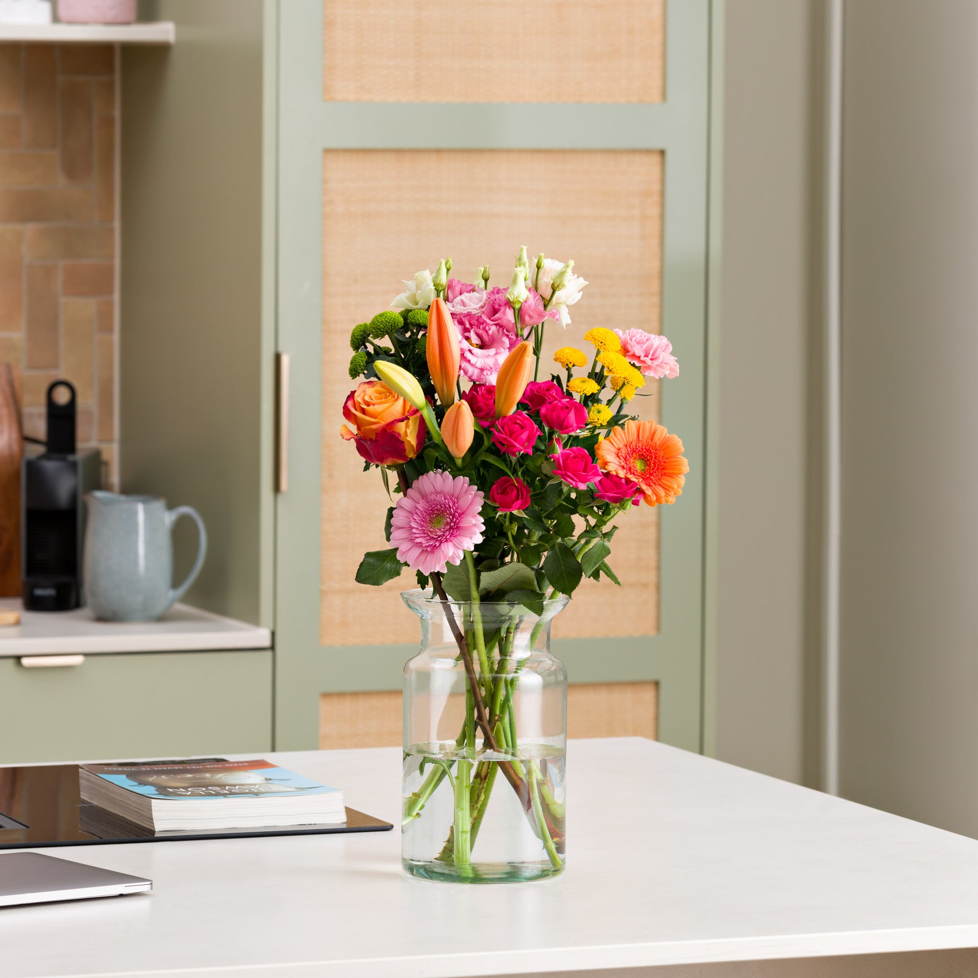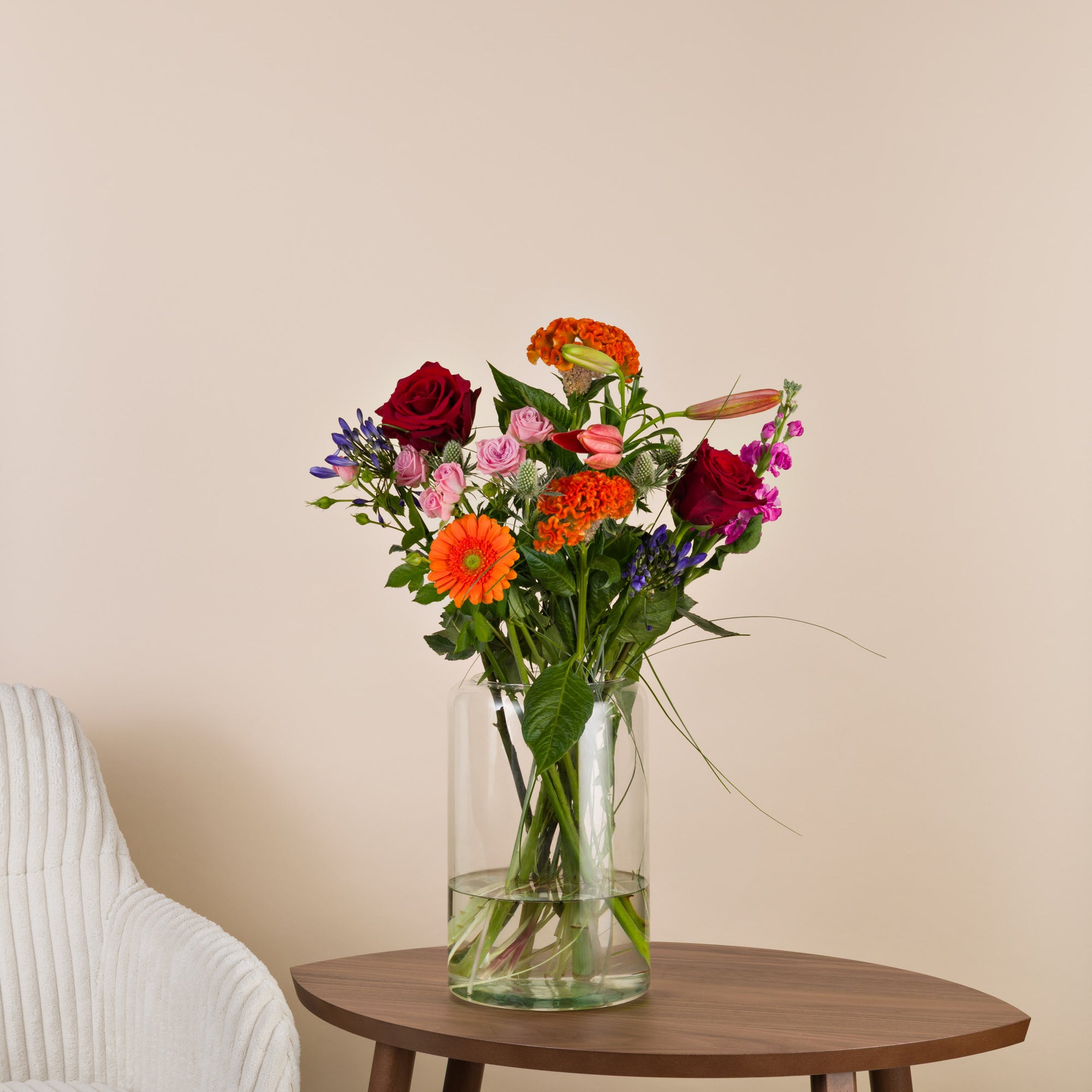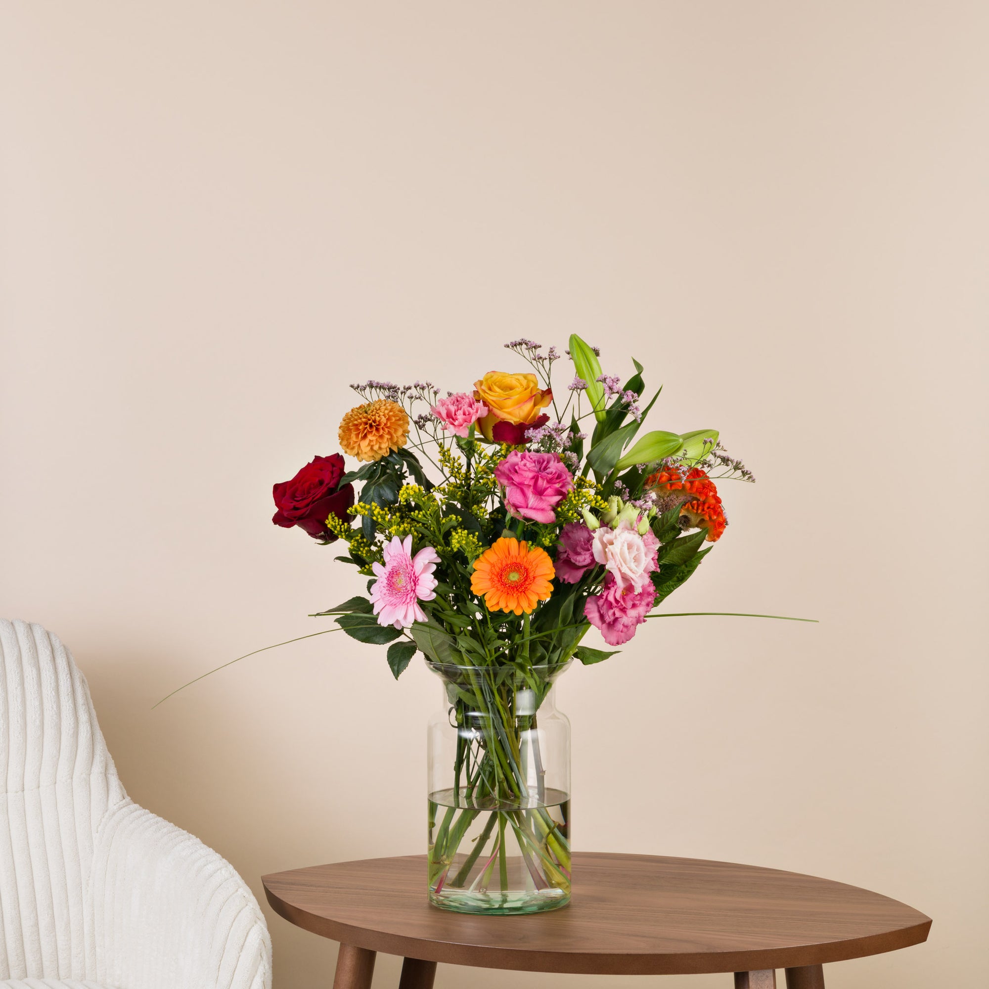 Verschenke Freude mit frischen Blumen mit einer Karte, einer persönlichen Nachricht und Schokolade - pünktlich zum Wunschtermin.